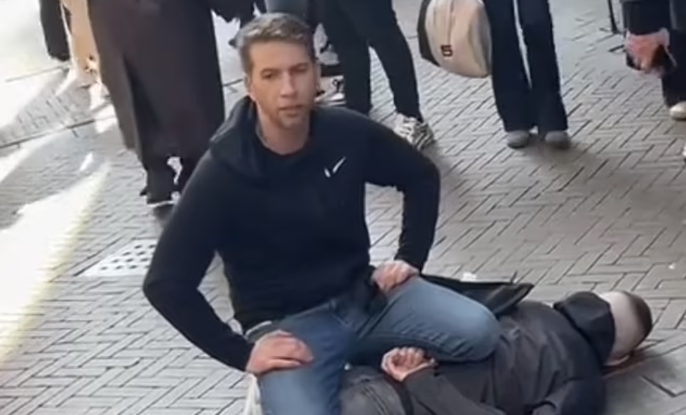 Turisten, som siden er blitt kalt «helten fra Amsterdam», holdt deretter den mistenkte fast med kneet for å hindre ham i å utføre flere angrep.