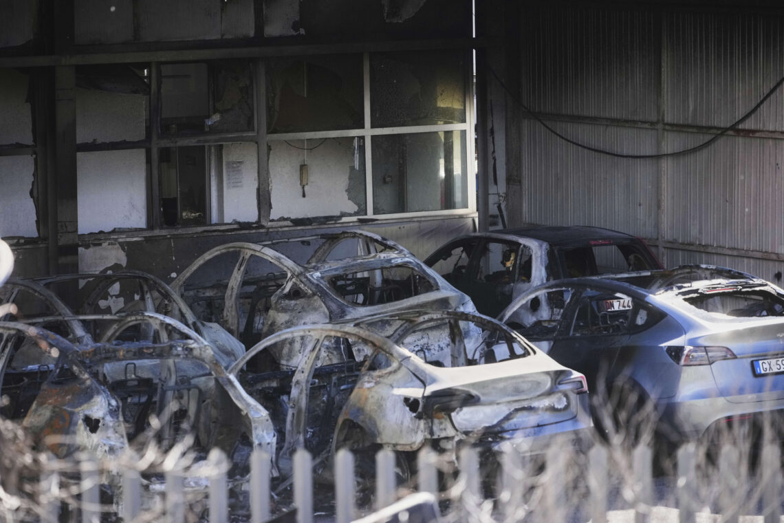 Anarkister tente på 17 Tesla-biler hos en forhandler utenfor Roma natt til mandag. Elon Musk kaller det terror.