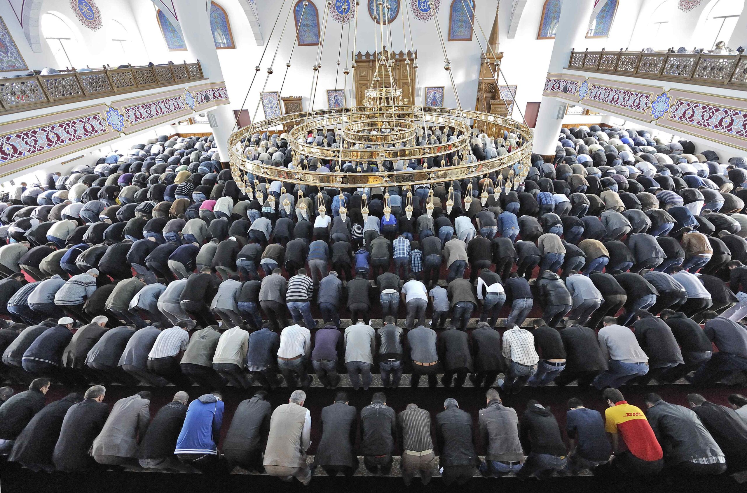Muslimer ber ved slutten av ramadan i en moské i Duisburg den 10. september 2010. Foto: Martin Meissner / AP / NTB.