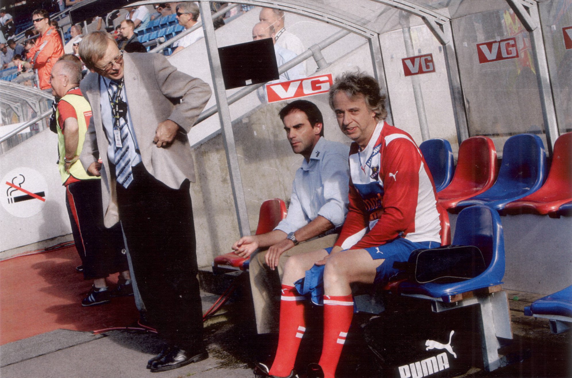 Artikkelforfatteren på benken til Lyn under en kamp mot Viking i 2005. Morgan Andersen virker betenkt. Lyn vant 2-1, og jeg slapp ikke til.
