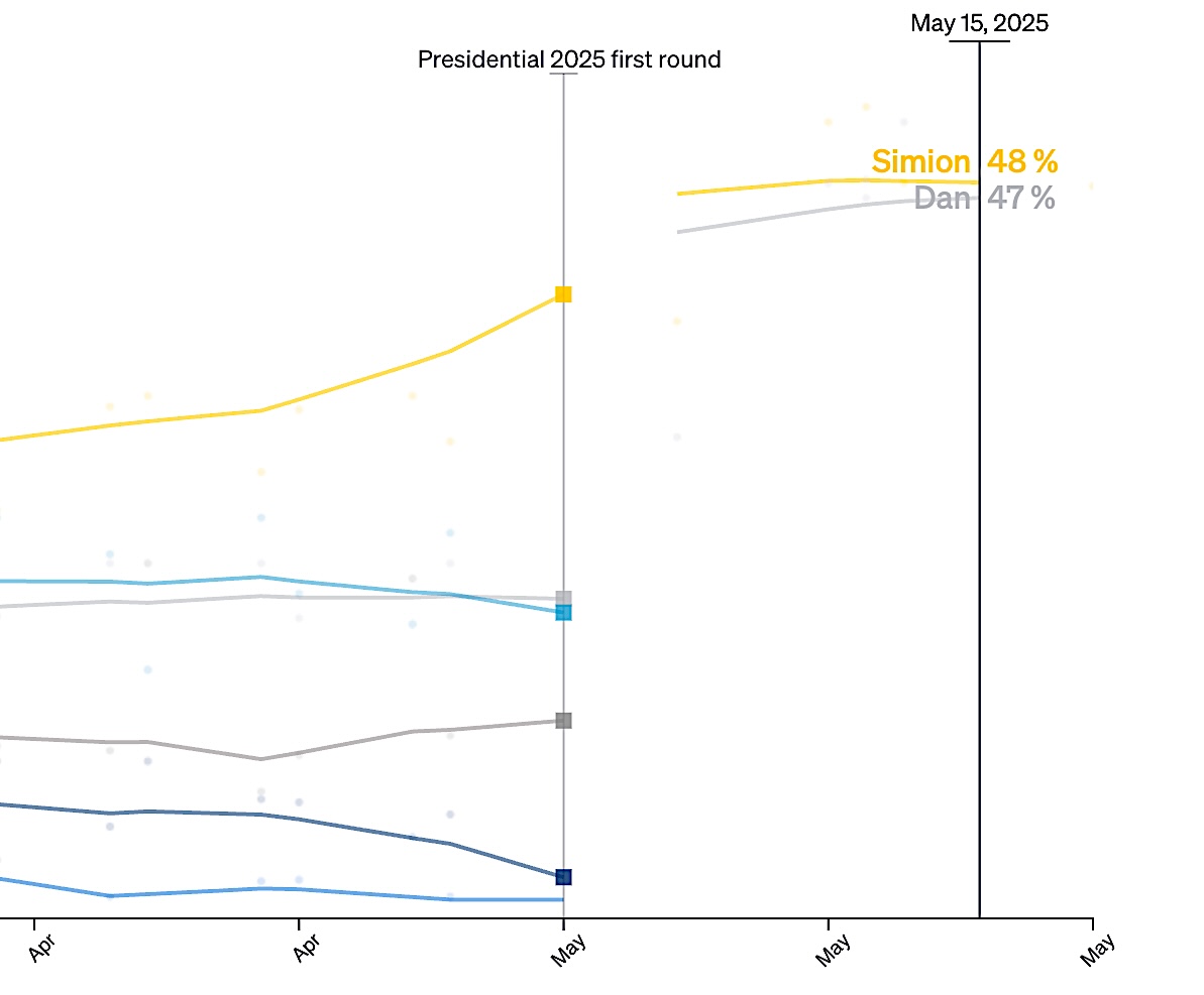 Det ser dermed ut til at den EU-vennlige Dan har et klart overtak på den nasjonalpopulistiske Simion.