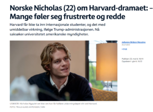I går publiserte NRK og andre medier oppsiktsvekkende reportasjer om norske studenter ved Harvard som frykter for fremtiden og er frustrerte og redde etter Trump-administrasjonens innstramming av visumregler for utenlandske studenter.