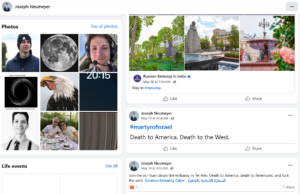 Ifølge Justisdepartementet skal Neumeyer ha kommet til Israel i april 2025. Den 19. mai postet han en rekke truende meldinger på sin Facebook-konto, hvor han blant annet skrev: