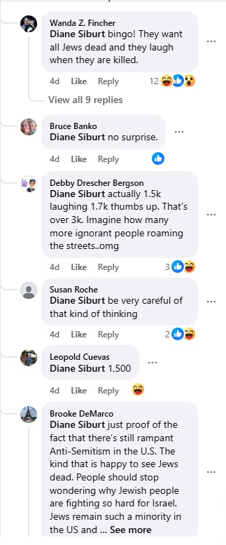 Når New York Times fjerner alle reaksjonene med latterfjes beskytter de samtidig alle de som gjerne vil se at jøder blir henrettet på åpen gate. Dette er enten et misforstått forsøk på å fjerne hatefulle reaksjoner, eller det kan ses som en ren hvitvasking av rått jødehat. Uansett kommer ikke jøder til å føle seg tryggere fordi New York Times fjerner navn på de som ler når de skytes ned på åpen gate i USA. Da er det vel bedre å vite hvem fienden er? Avisen burde ha latt det stå for alle til å se.