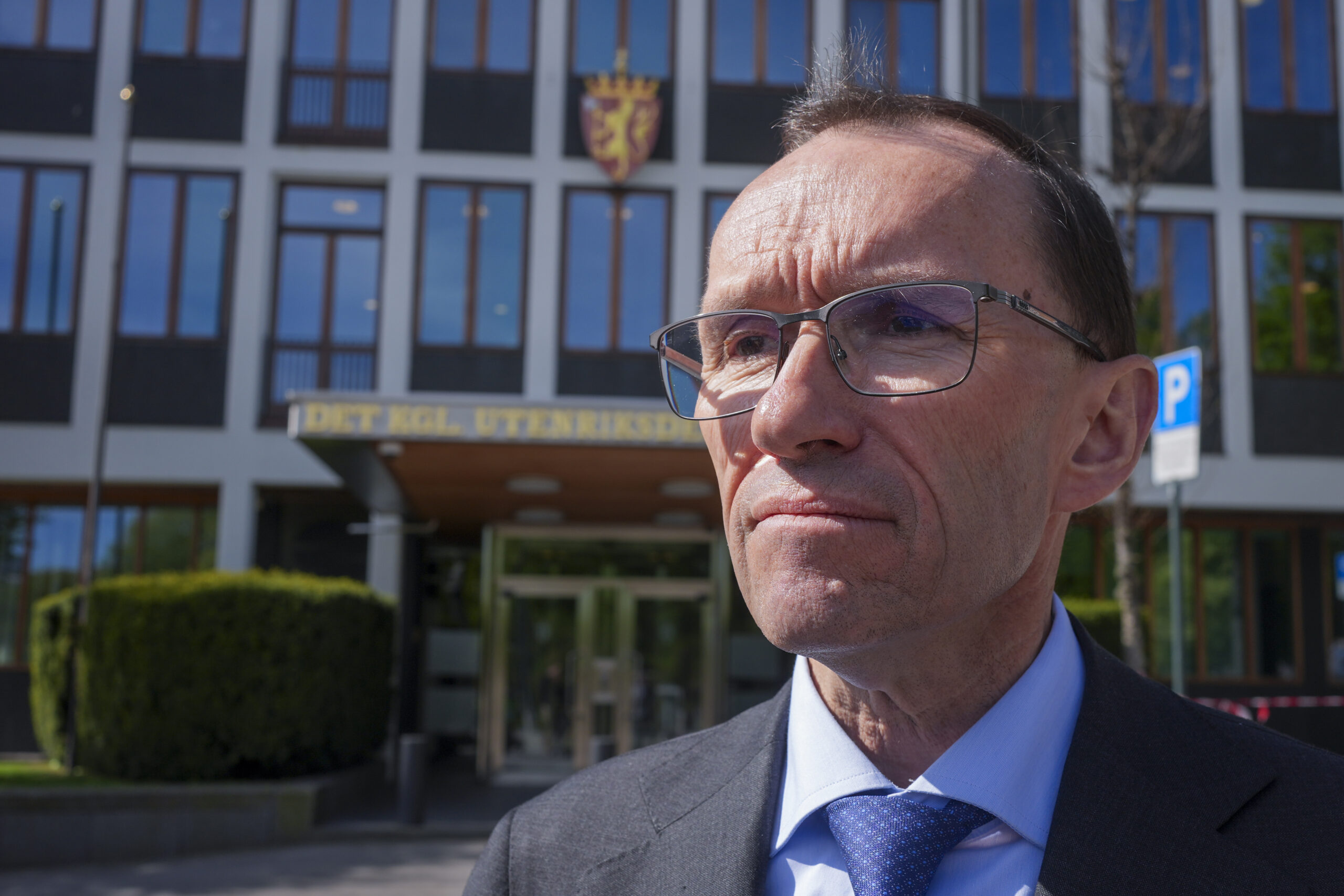 Utenriksminister Espen Barth Eide utenfor Utenriks­departementet (UD) den 7. mai 2025. Foto: Terje Pedersen / NTB.