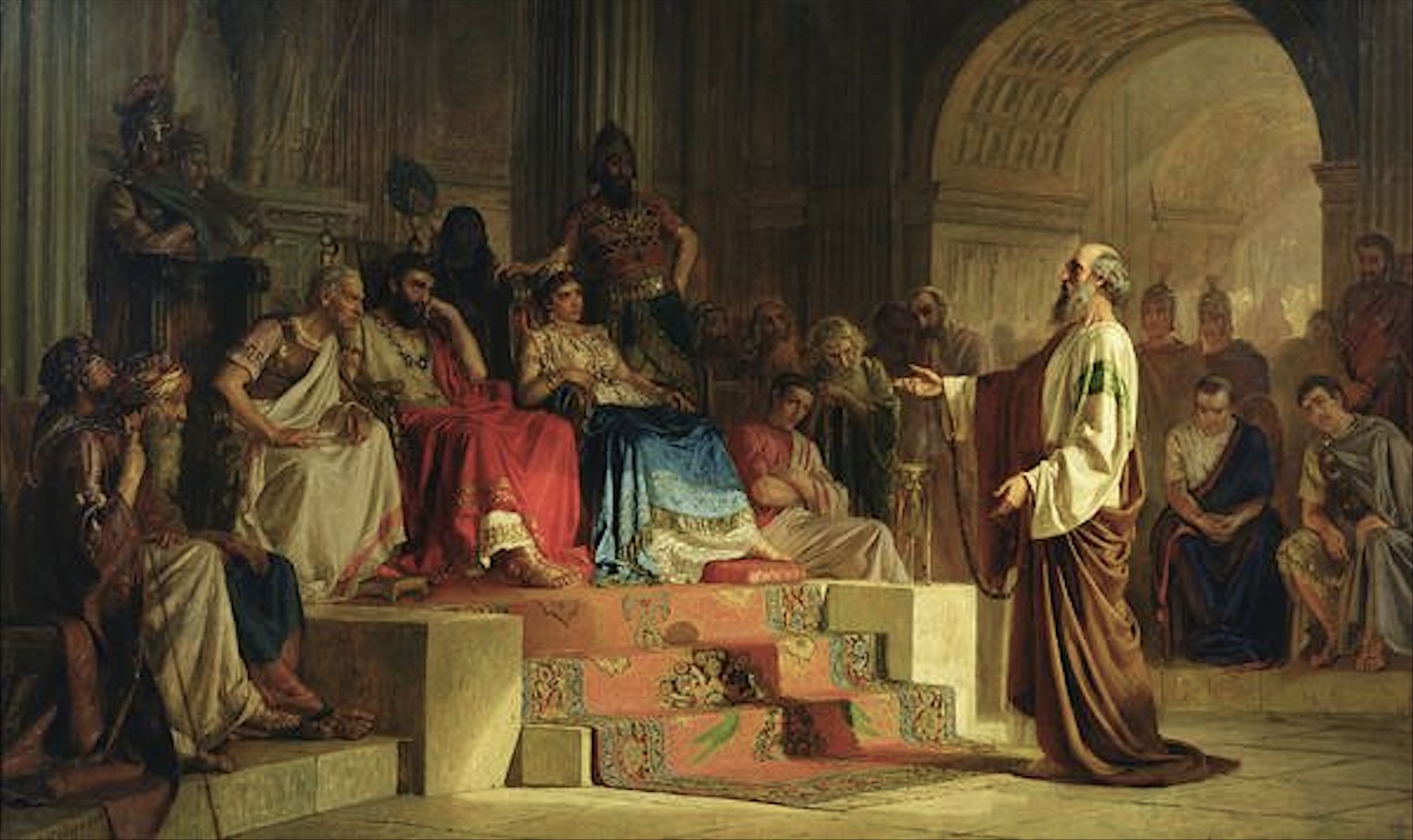 Nikolai Bodarevsky (1850–1921), «Apostelen Paulus’ rettssak». Det transkarpatiske fylkes kunstmuseum, Uzjhorod, Ukraina.