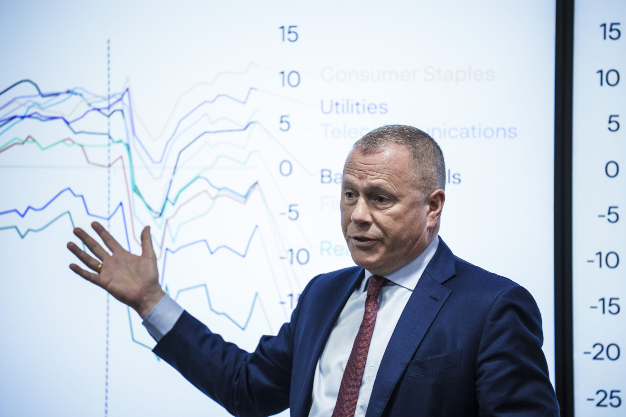 Oljefondets sjef Nicolai Tangen holder pressekonferanse om resultatet for 1. kvartal i Oslo den 24. april 2025. Foto: Stian Lysberg Solum / NTB.