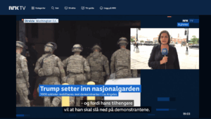 Dagsrevyens dekning i går tegner også et bilde av Trump som hovedansvarlig for urolighetene. Den eneste scenen med vold som vises kort, er en brennende bil. Resten av reportasjen fokuserer på fredelige demonstranter og Trumps autoritære handlinger.