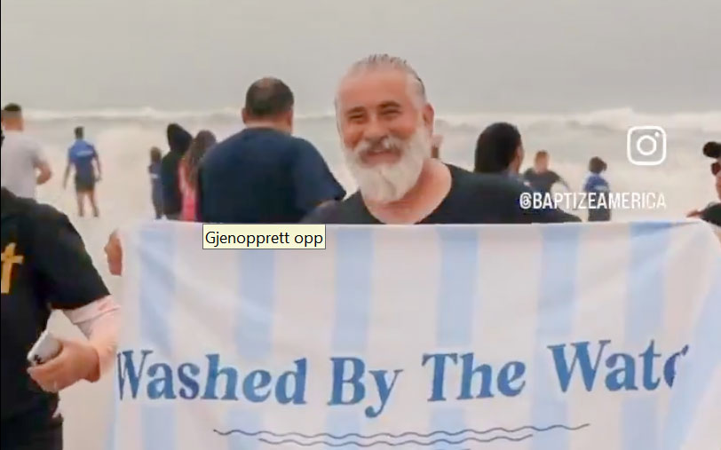 Ved Pirate’s Cove i California som på 1970-tallet var sentralt i den tids Jesus-bevegelse, ble tusenvis døpt i havet i scener som minnet om de ikoniske massedåpene ledet av pastor Chuck Smith som er skildret i filmen «Jesus Revolution» fra 2023.