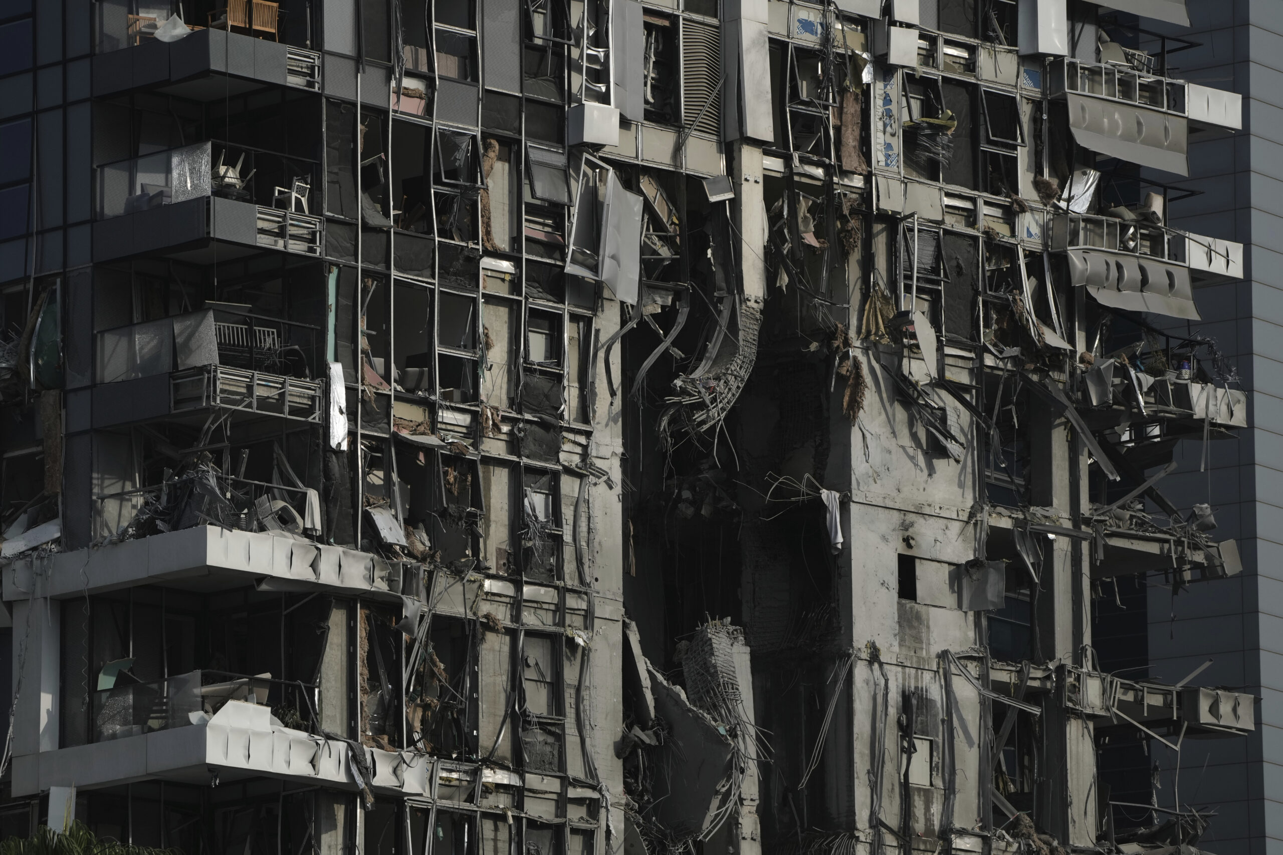 A residential building that was struck by a missile fired from Iran, is seen in Tel Aviv, Israel, on Saturday, June 14, 2025. (AP Photo/Leo Correa)