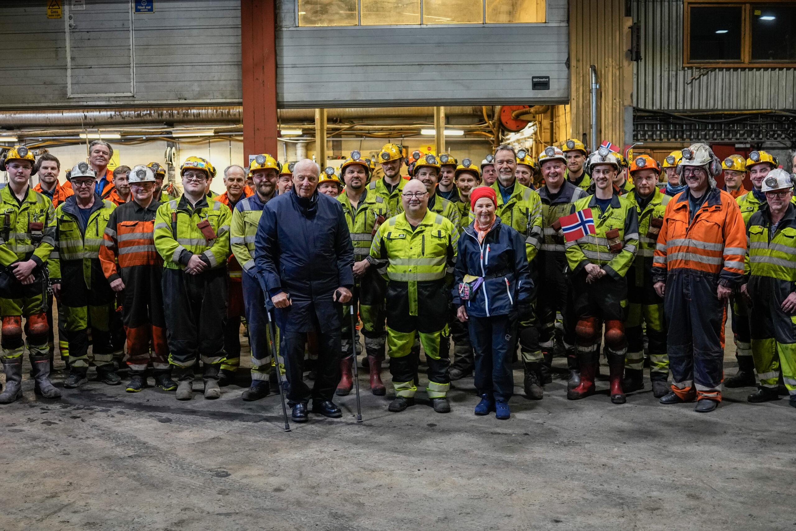 Gruvearbeiderne satte pris på besøk av Kong Harald og dronning Sonja mandag. Foto: Cornelius Poppe / NTB / POOL
