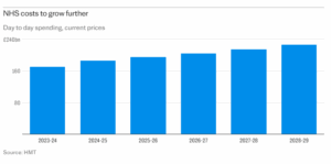 Problemet er bare at løftet om maks 18 ukers ventetid er ti år gammelt. At de årlige utgiftene til NHS ser ut til å stige fra litt over 160 til 226 milliarder pund fra 2024 til 2029 hjelper ikke.