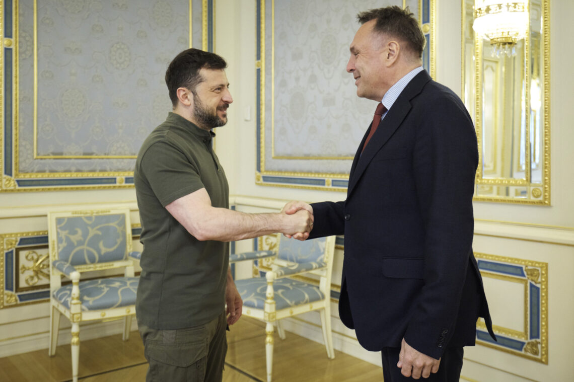 Under besøket møtte forsvarsminister Sandvik Ukrainas president Volodymyr Zelenskyj, som uttrykte takknemlighet for Norges støtte. Zelenskyj skrev på Telegram og X at de diskuterte videre forsvarssamarbeid, inkludert samproduksjon og investering i ukrainsk våpenproduksjon, samt styrking av luftforsvar og kampfly. Han fremhevet norske F-16-fly og NASAMS som viktige for å beskytte Ukrainas luftrom.