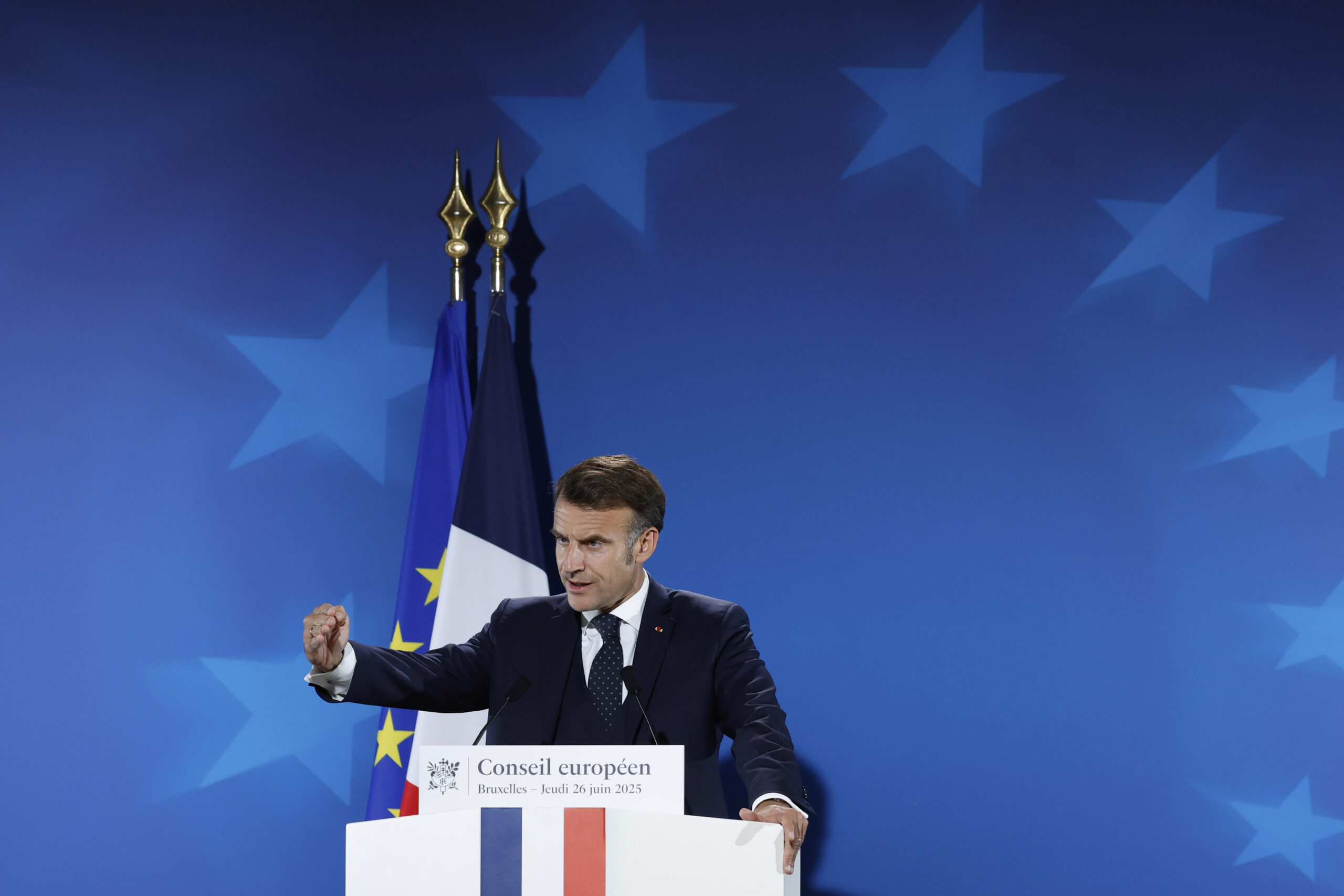 Emmanuel Macron under en pressekonferanse ved et EU-toppmøte i Brussel den 27. juni 2025. Foto: Omar Havana / AP / NTB.