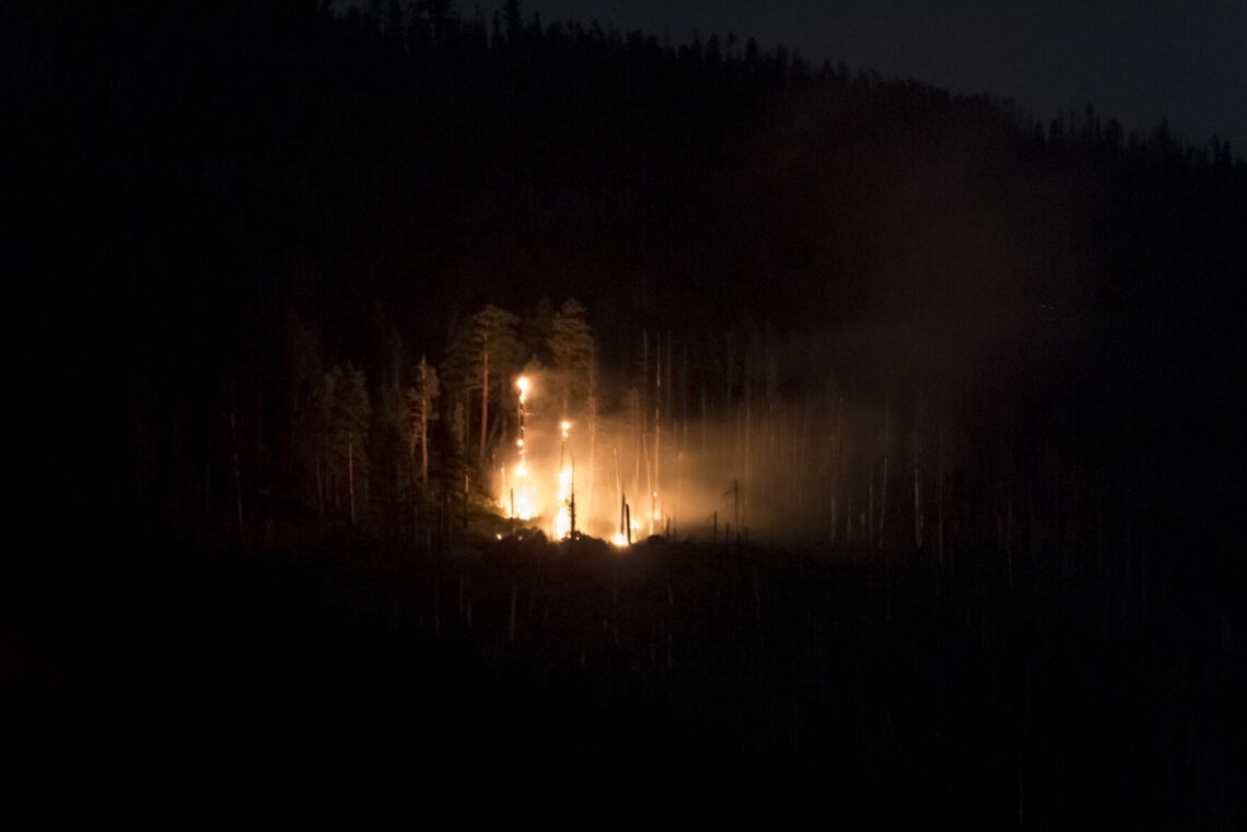 Sheriffens kontor understreket samtidig at folk måtte være forsiktige i området fordi brannen fortsatt ikke var slukket.