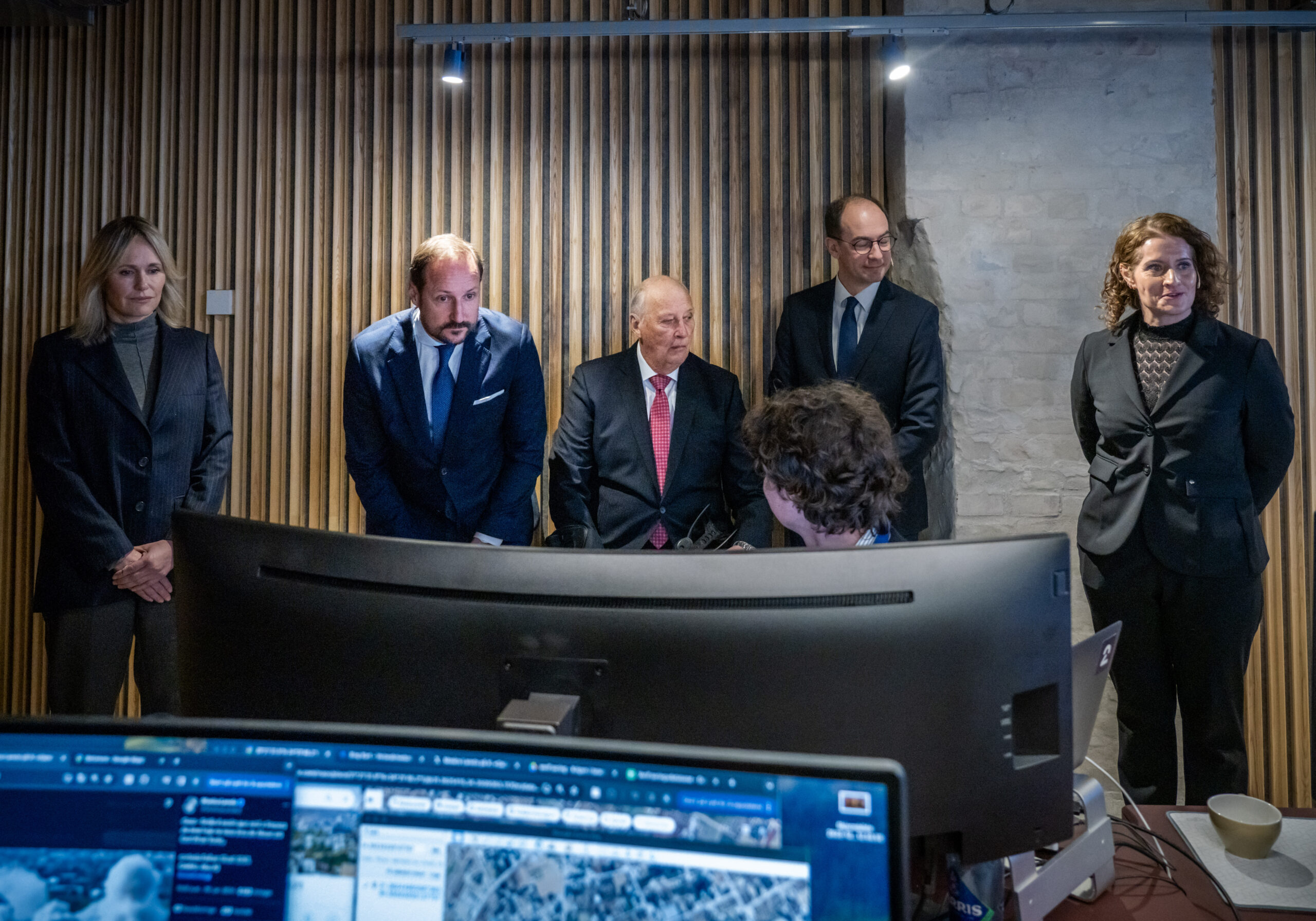 Kong Harald og kronprins Haakon besøker Faktisk.no i Pressens hus i Oslo den 23. januar 2025. Foto: Ole Berg-Rusten / NTB.