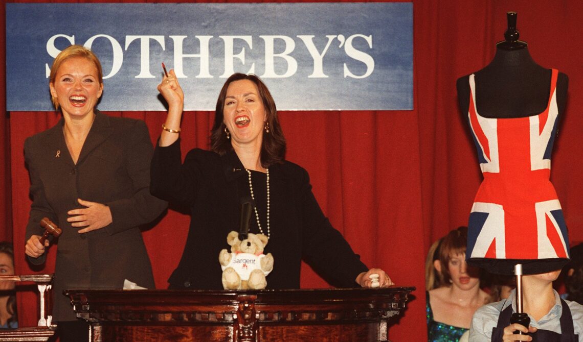 Spice Girls Geri Halliwell i sin berømte Union Jack-kjole. Foto: AP /PA-Fiona Hanson/ NTB