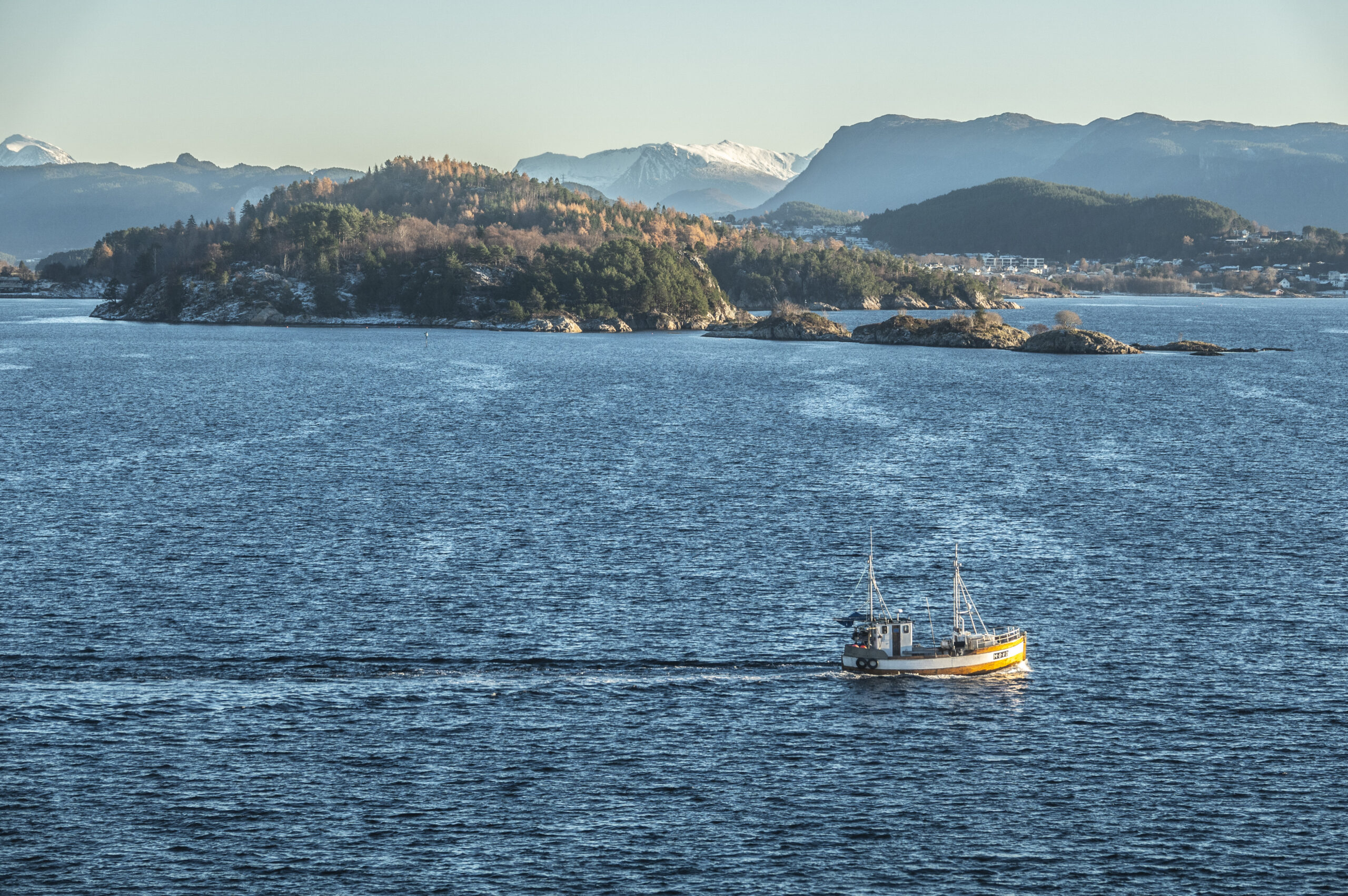 Liten fiskebåt på Borgundfjorden ved Ålesund.