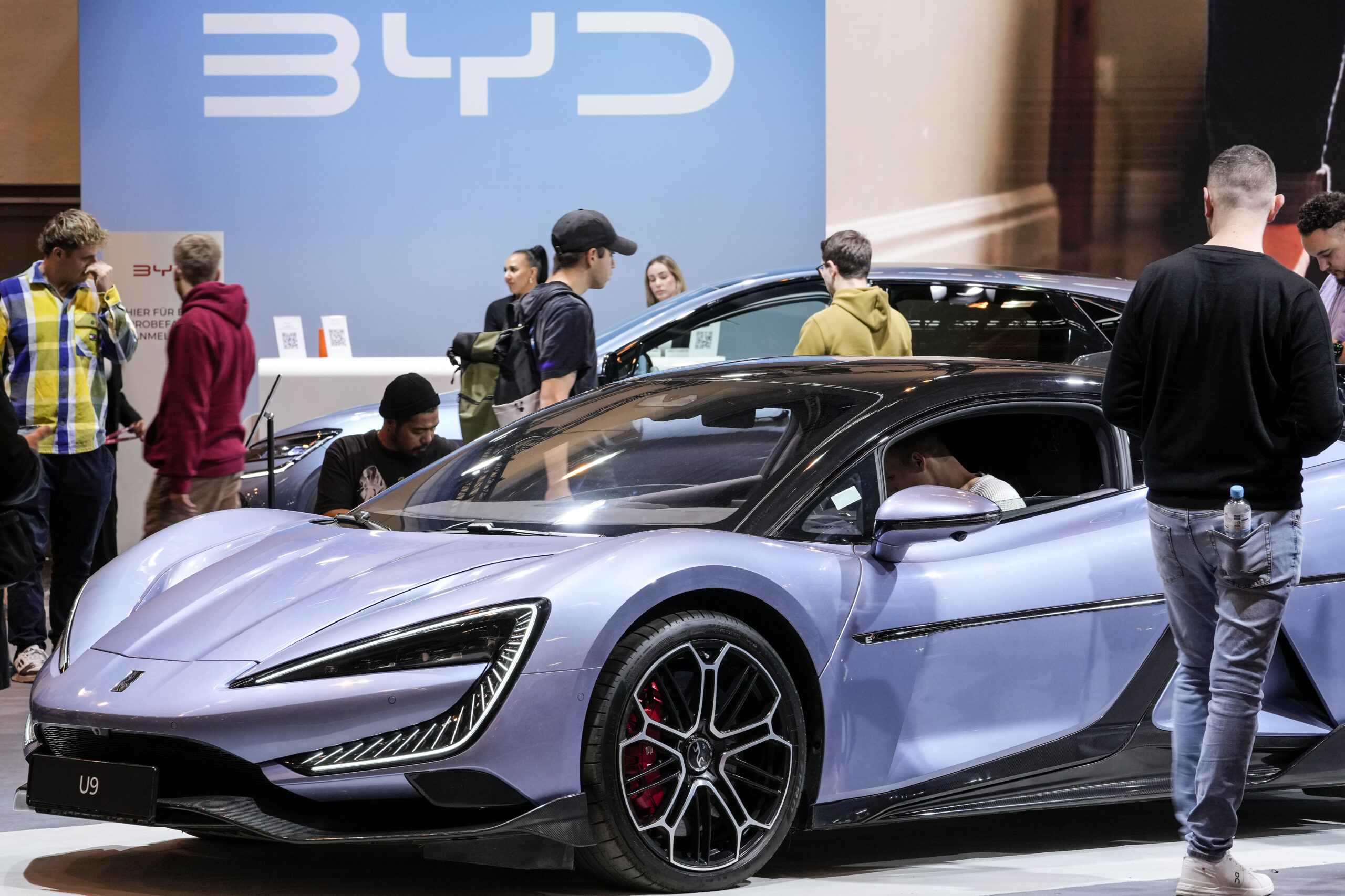 Folk besøker BYDs utstilling på Essen Motor Show i Tyskland den 29. november 2024. Foto: Martin Meissner / AP / NTB.