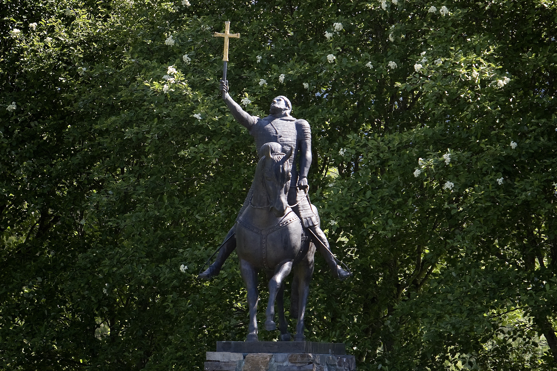 Statuen av Olav den hellige i Amfiet der Spelet om Heilag Olav spilles på Stiklestad, der det avgjørende slaget i kristningen av Norge stod i 1030. Foto: Gorm Kallestad / NTB.