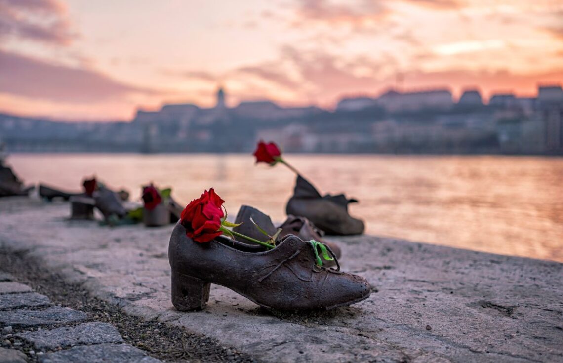 Minnesmerket på østbredden av Donau hedrer tusenvis av jøder som ble massakrert i Budapest under andre verdenskrig av fascistiske ungarske militsmenn fra Pilkorspartiet.