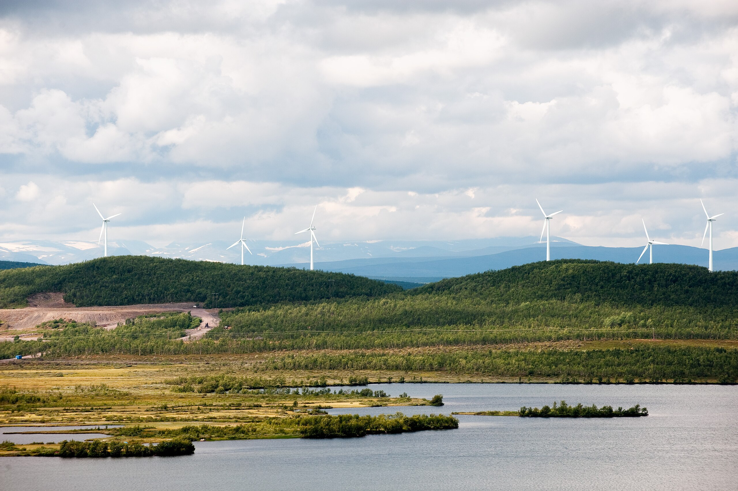 Utsikt til vindturbiner i Lappland i Nord-Sverige. Foto: Johannes Jansson / norden.org via Wikimedia Commons (cc by 2.5 dk).