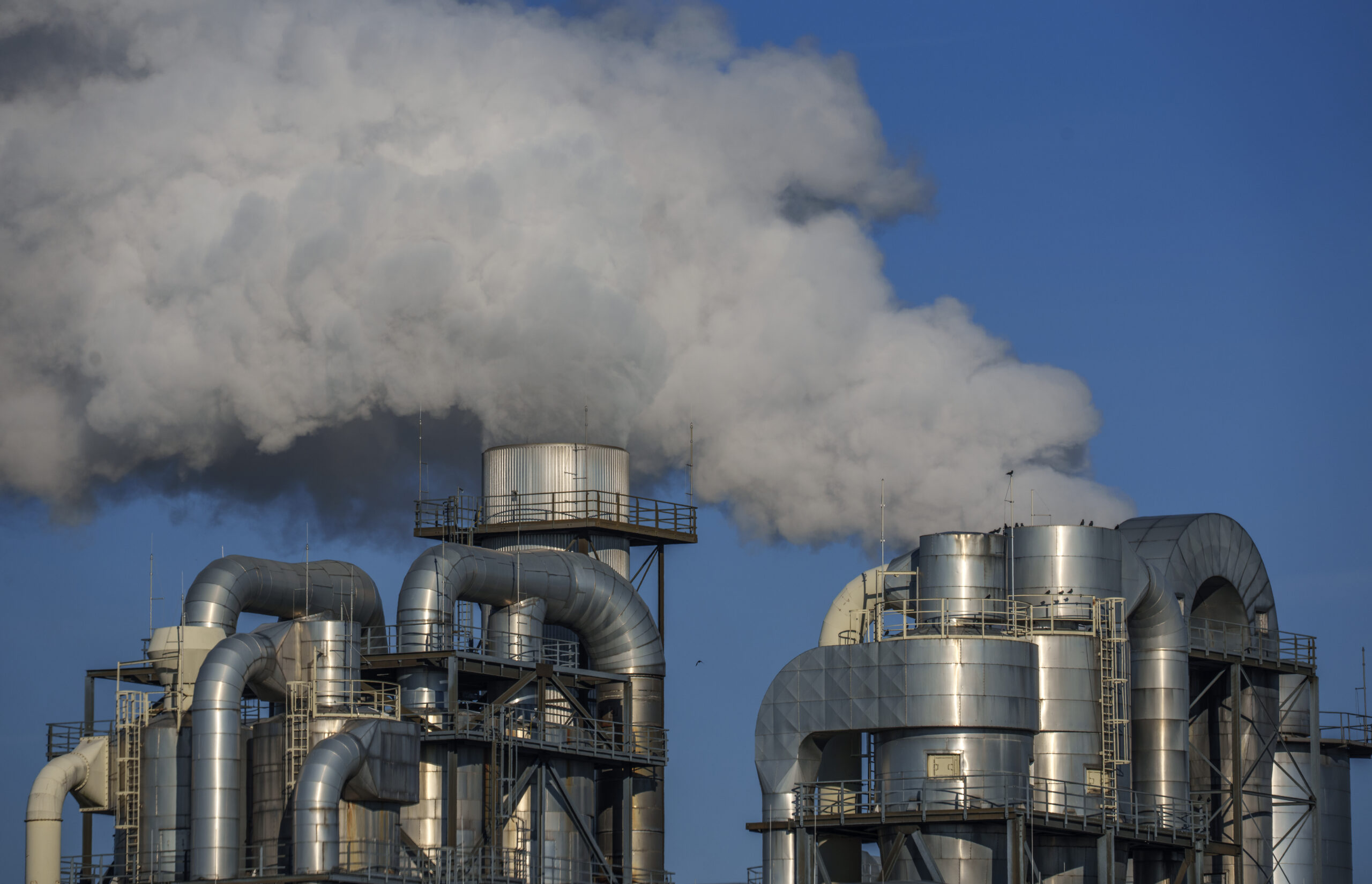 Røyk stiger opp fra fabrikkpiper i Heiligengrabe i Tyskland den 28. oktober 2021. Foto: Michael Sohn / AP / NTB.
