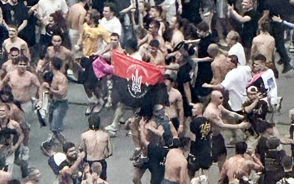Ukrainske tilskuere vekket til live historiske og politiske spenninger mellom Polen og Ukraina ved å vifte med det rød-sorte flagget som assosieres med Organisasjonen av ukrainanske nasjonalister (OUN) og dens militære gren, UPA, som i tillegg til å drepe flere tusen jøder, sto bak massakren på 50.000–60.000 polakker i Volhynia under annen verdenskrig.