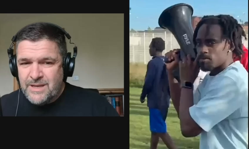 Angriperne består av mørkhudede, og det er mange av dem. Hendelsen skjedde etter en fotballkamp for veldedighet i Adamstown, Dublin på søndag. En video av det som skjedde spredte seg på sosiale medier.