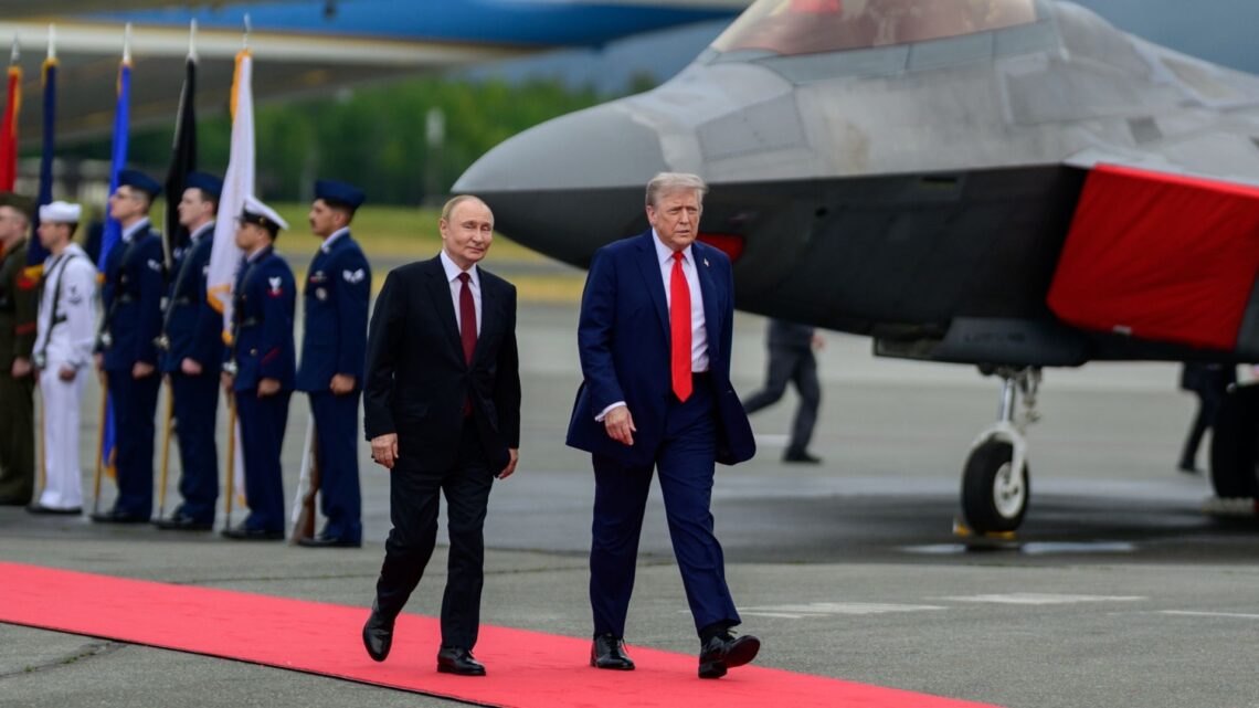 President Donald Trump ga Vladimir Putin en uforglemmelig velkomst under deres møte i Alaska fredag, da et B-2 stealth bombefly og fire F-22-jagere fløy over dem ved Joint Base Elmendorf-Richardson.