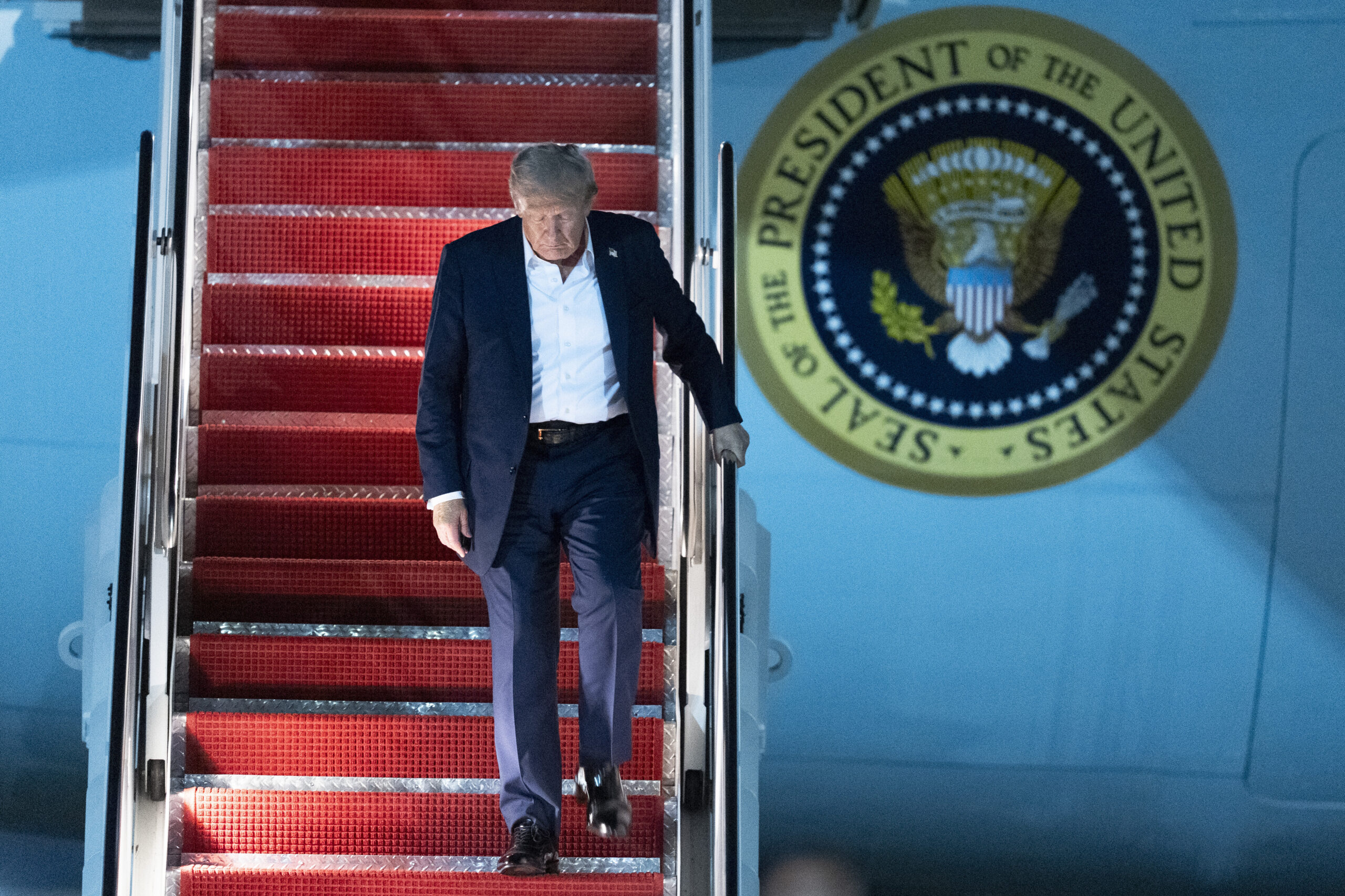 Donald Trump stiger ned fra Air Force One på Andrews-basen i Maryland den 16. august 2025 etter møtet med Putin i Alaska. Foto: Manuel Balce Ceneta / AP / NTB.