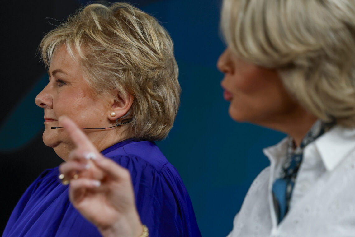 Høyre-leder Erna Solberg mener Sylvi Listhaug og FrP går for langt i sine valgløfter. Listhaug mener Solberg burde fokusere på hovedmotstanderen Ap.