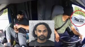En sjokkerende video viser øyeblikket en minivan krasjer inn i en lastebil som foretar en ulovlig u-sving på motorveien. Sjåføren sitter rolig i førerhuset, uberørt av tragedien som kostet tre mennesker livet. Harjinder Singh, en indisk statsborger, er nå tiltalt for drap, mens millioner viser sin støtte til ham.