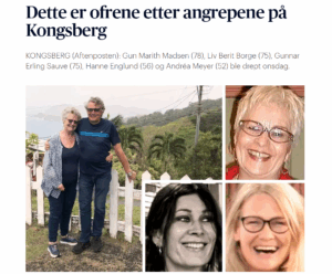 Og så er det massedrapene i Kongsberg i 2021, der Espen Andersen Bråthen, en 37-åring født i Norge av norsk far og dansk mor, massakrerte fem uskyldige nordmenn. Mistanken var først islamistisk terror, men det ble raskt avskrevet som psykotisk vanvidd.
