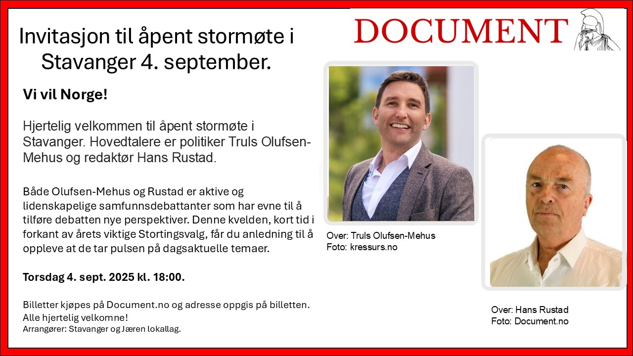 Siste mulighet for oppdatering og informasjon før stortingsvalget. Informasjon finner du her og billetter kjøpes hos Document forlag. Velkommen til både medlemmer, og alle lesere og lyttere av Document Media.