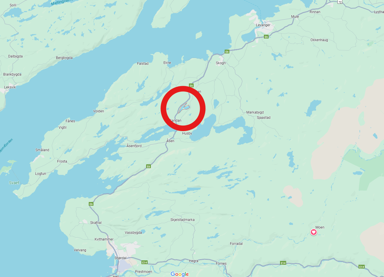 Raset gikk like ved Nesvatnet i Levanger kommune. Levanger ligger omtrent 40 minutter nord for Stjørdal og Værnes lufthavn.
