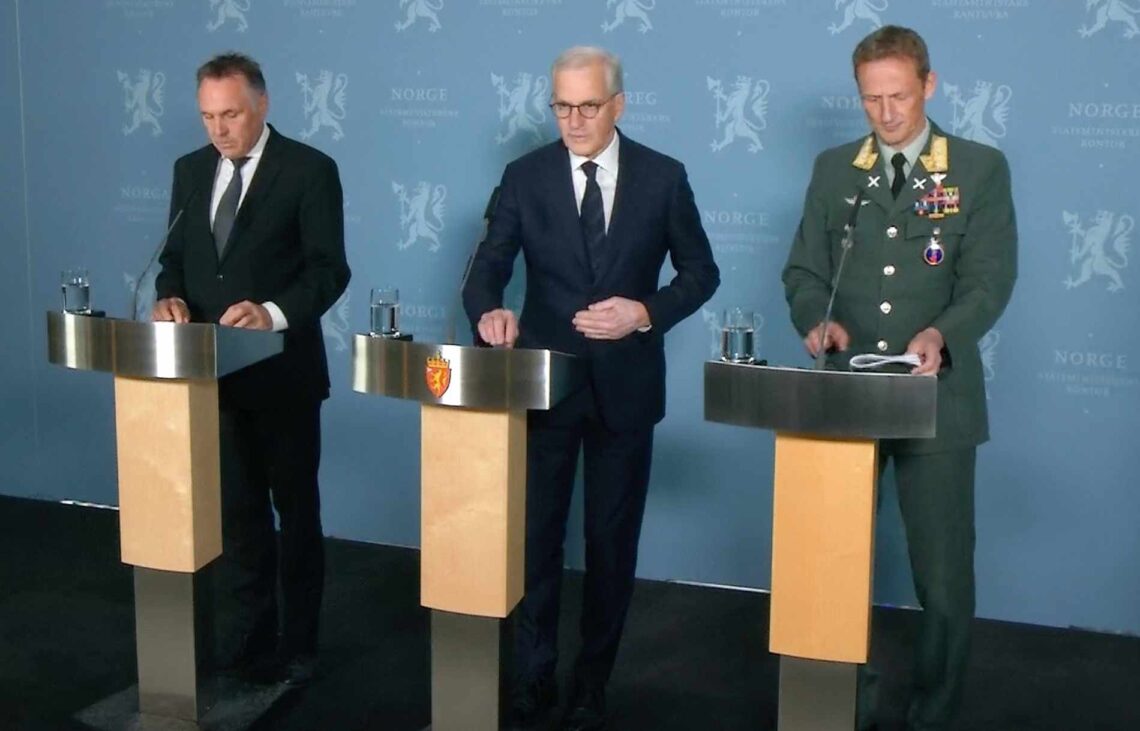 Det var Støre sammen med forsvarsminister Tore O. Sandvik som orienterte om status for anbudet, med forsvarssjef Eirik Kristoffersen til stede.