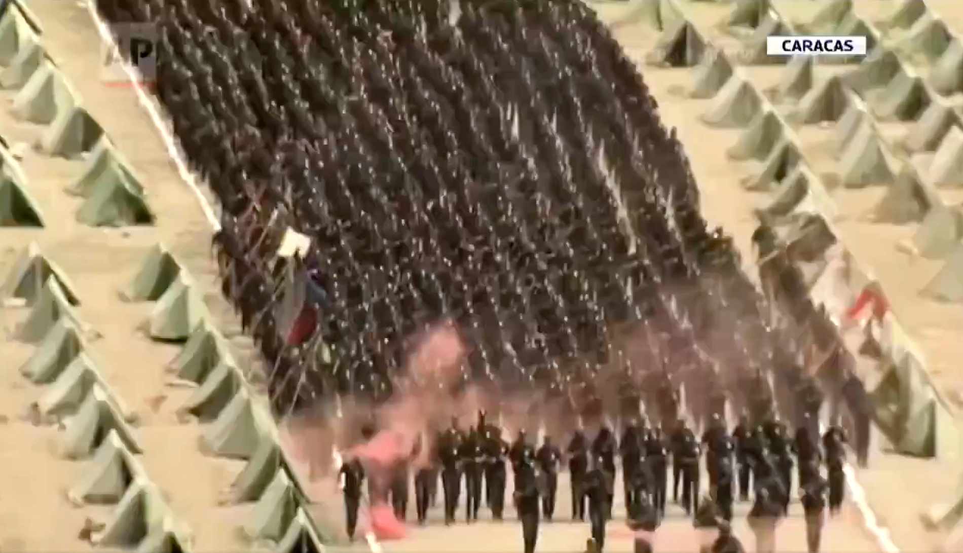 Bilde av angivelig troppeoppstilling fra Maduros propagandavideo etter Trumps utplassering av marinestyrker nær Venezuela. (AP News/via X)