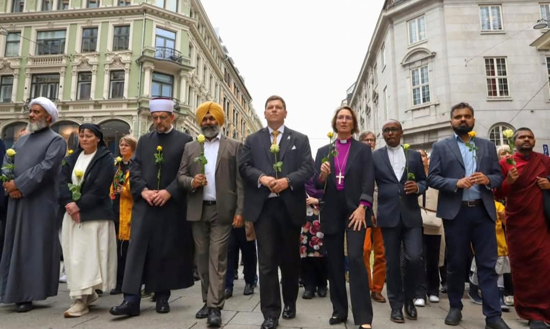 Mange prominente deltok i rosetoget for Tamima 31. august 2025. Blant annet Kari Mangrud Alvsvåg, biskopen i Borg, og Christian Lomsdalen fra Human-Etisk Forbund. Foto: Islamsk Råd Norge/Facebook.