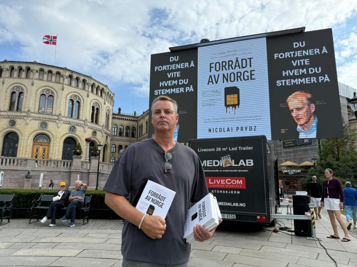 Onsdag hadde Rustad og forfatter Nicolai Prydz en samling foran Stortinget, med tydelig tekst om at folk fortjener å vite hvem de stemmer på.