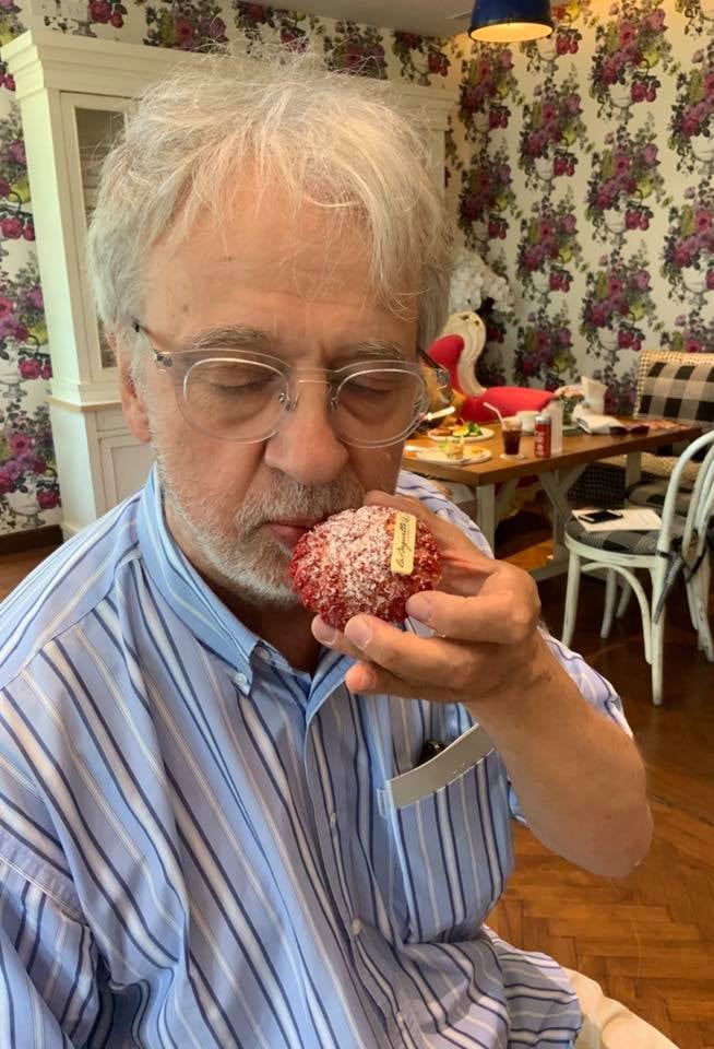 Professor kake inhalerer en Jordbær-galla-extraordinaire som bare har sekunder igjen å leve. Foto: Privat