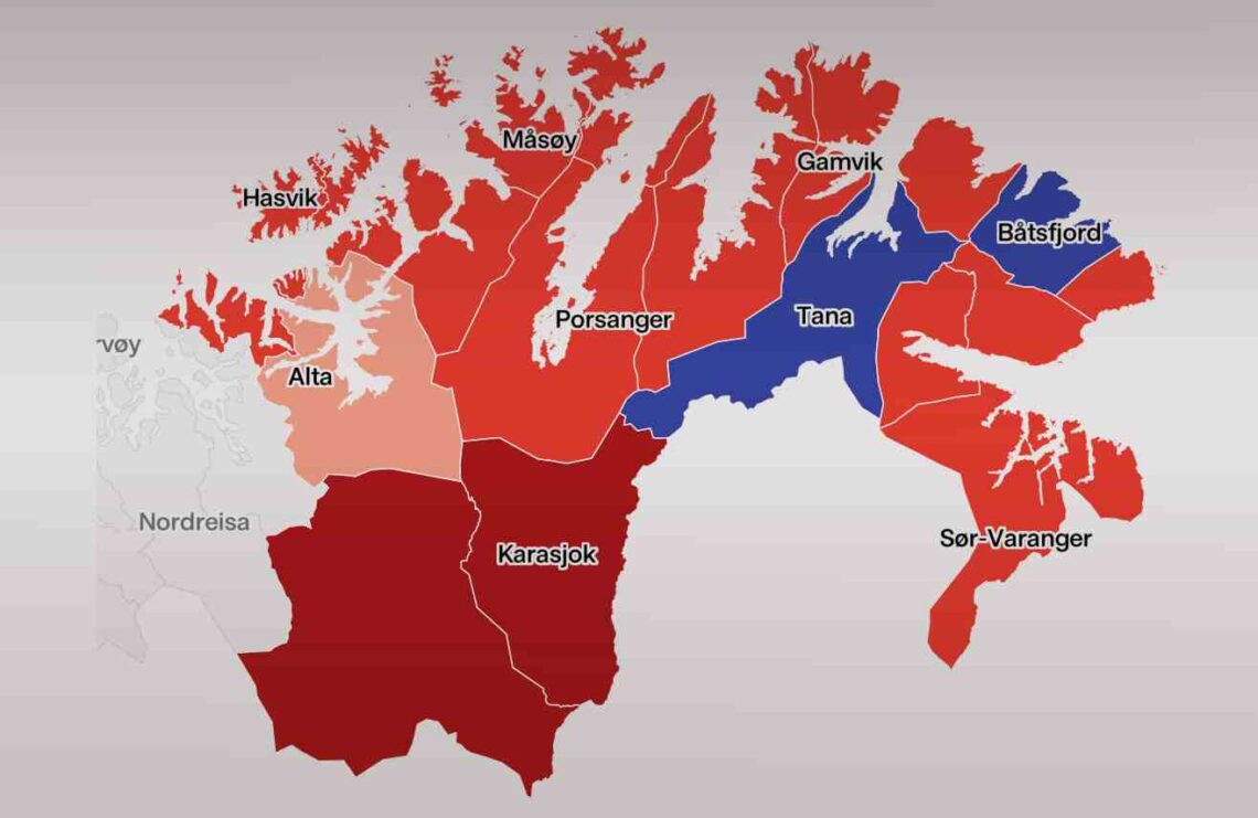 I Kautokeino får Rødt 19,2 prosent oppslutning, en økning på 15 prosentpoeng fra kommunevalget i 2021. Pasientfokus raser 9,9 poeng i forhold til 2021, til 18,6 prosent av stemmene.