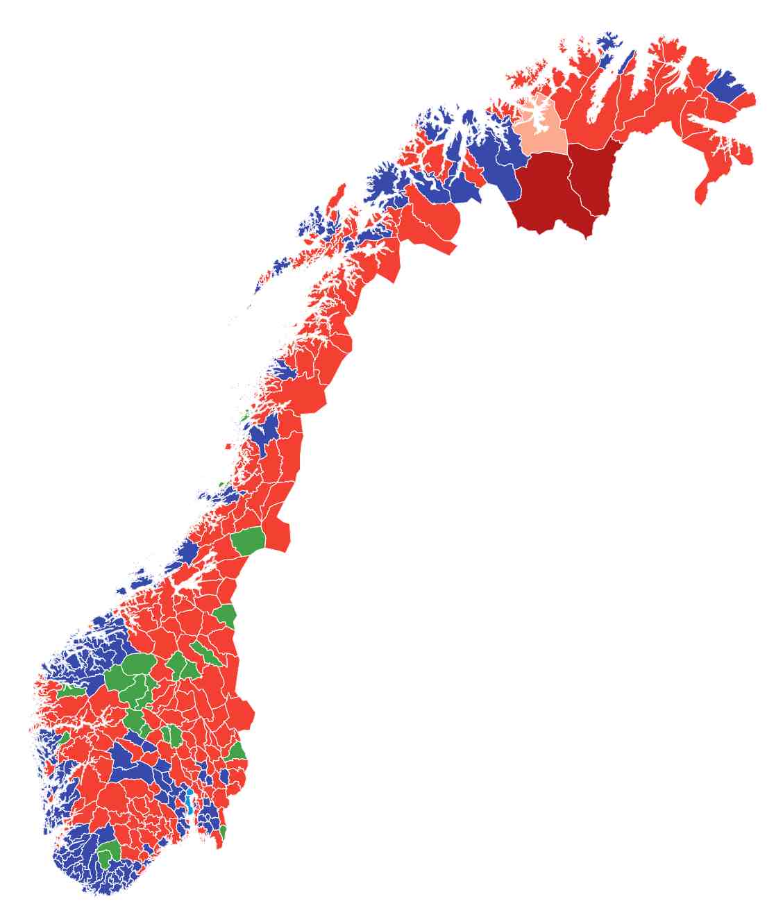 Rødt er fullstendig overlegne i landets nest største kommune, Karasjok. Like før klokken 22.30 på valgdagen ville 34,7 prosent ha en marxistisk revolusjon i den tradisjonelle Ap-kommunen.