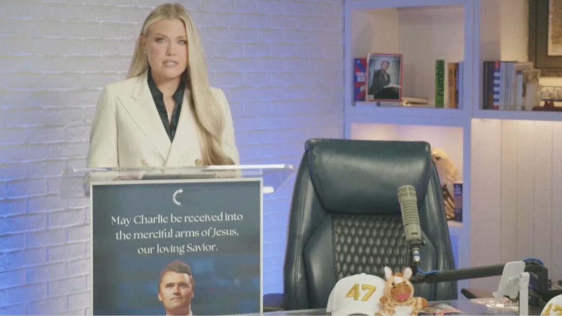 Med sterk og tydelig stemme fortsetter hun å takke hele Turning Point USA-ledelsen for å være stabiliteten til både familien hennes og organisasjonen de siste dagene. Hun takker også visepresident J.D. Vance og kona Usha for kjærligheten og støtten.