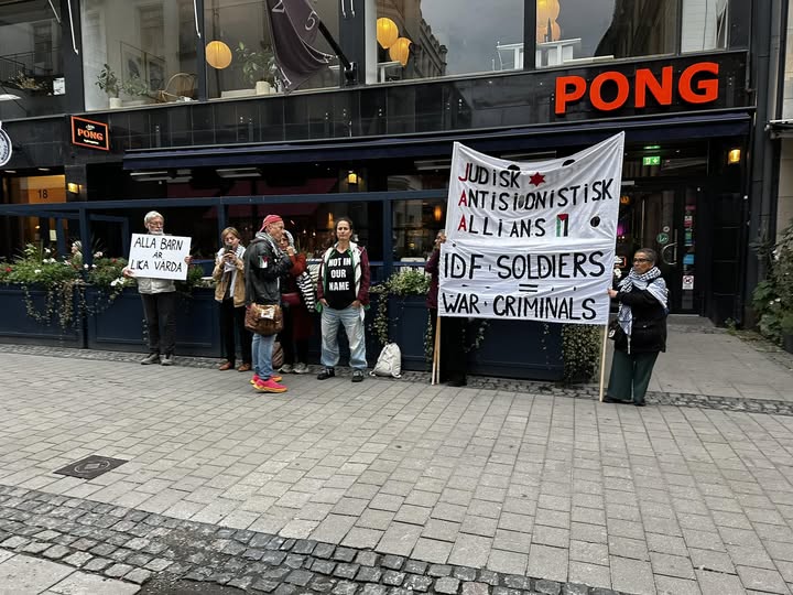 De 250 elevene ved Hillel-skolen på Östermalm i Stockholm ble mandag ettermiddag møtt av en anti-israelsk demonstrasjon, palestinske flagg og budskapet «Alle barn er like mye verdt». Demonstrantenes banner hevdet også at IDF-soldater er krigsforbrytere.