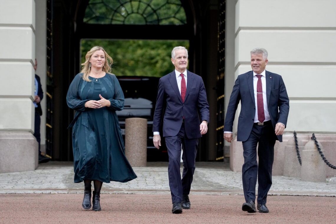 Dette skjedde klokken 10.10 da Støre kom ut på Slottsbakken sammen med Kjersti Stenseng og Bjørnar Skjæran, som ble utnevnt av Kongen i statsråd få minutter tidligere, skriver VG.