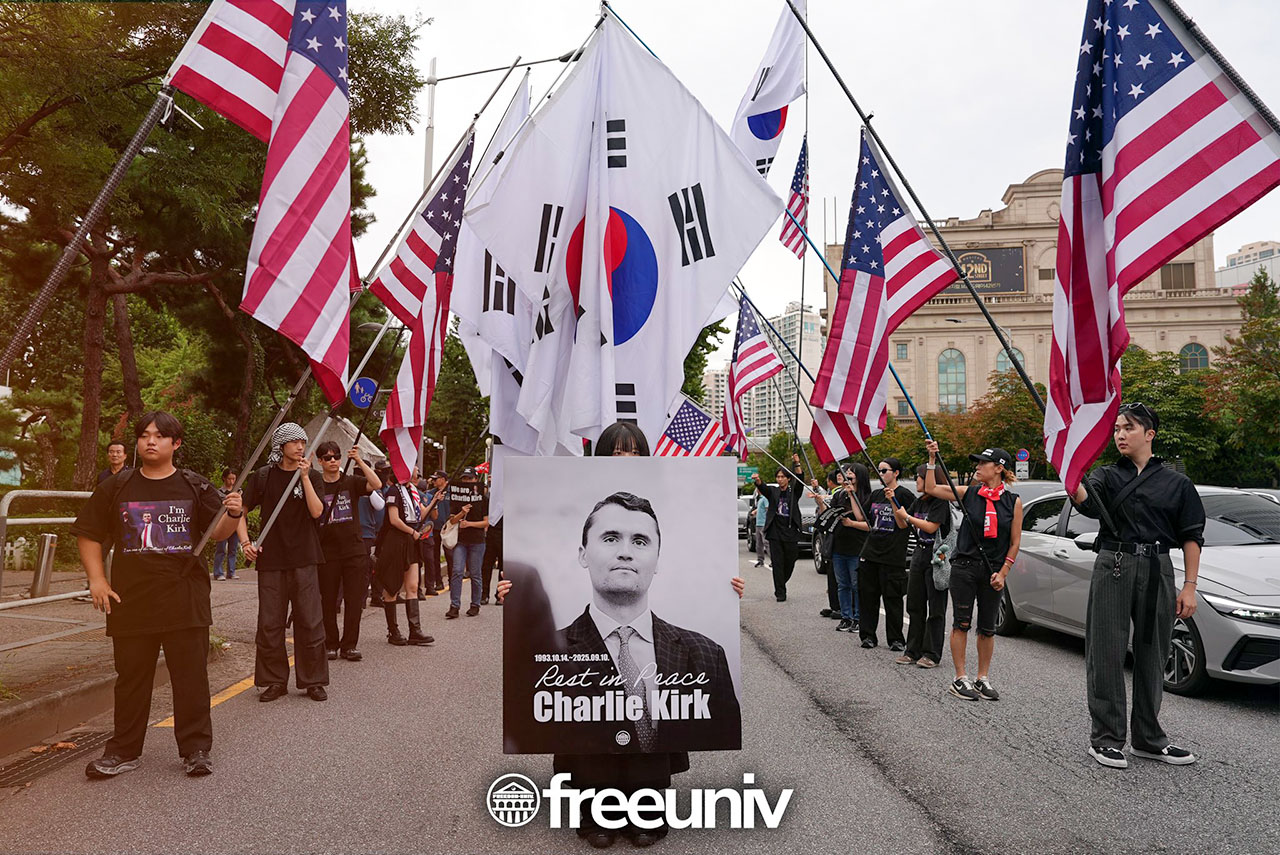 Kort tid efter Kirks død organiserte unge sydkoreanere marsjer i Seoul med koreanske og amerikanske flagg og slagord som «Vi er Charlie Kirk» – til ære for en «kristenkonservativ leder». Initiativet kom fra den konservative ungdomsorganisasjonen «Freedom University» som var vertskap for Kirk da han besøkte Seoul 6. september under arrangementet «Build Up Korea» – bare fire dager før han ble skutt.