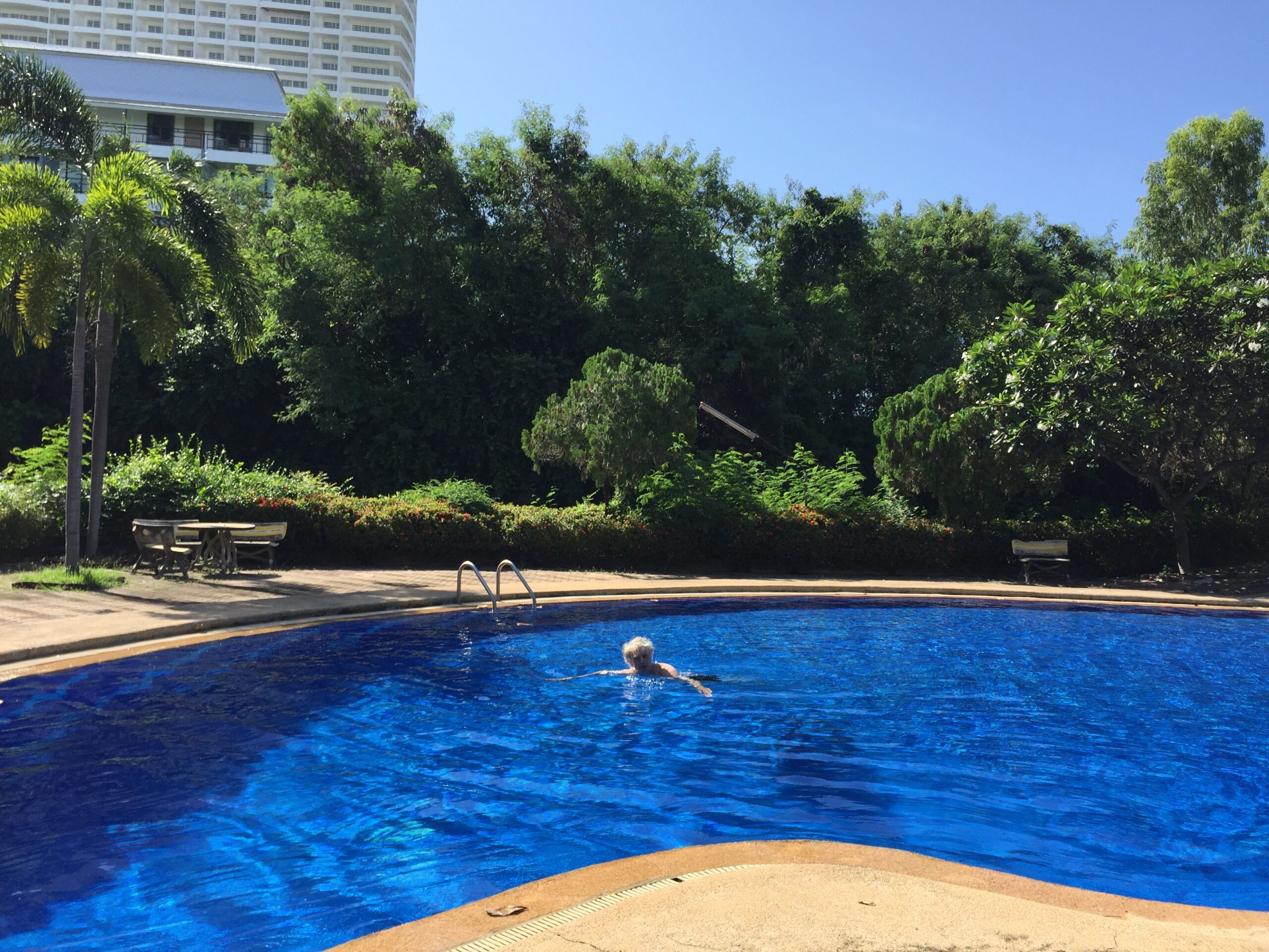 Regntiden i Thailand er ikke nødvendigvis som man tror. Siste feriedag. Artikkelforfatteren legger på svøm, snart skal han møte kommandosoldaten fra helvete. Foto: Privat.