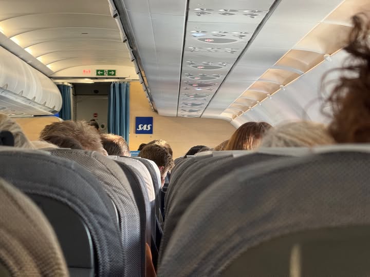Jeg var ikke oppspilt. Bare trett. Og gruet meg. Jeg hadde funnet plassen min ved vinduet. Kabinen fyltes. Skumping i midtgangen. Skuffede utbrudd ved synet av fulle bagasjehyller. Folk lærer aldri. På Economy MÅ man boarde tidlig.