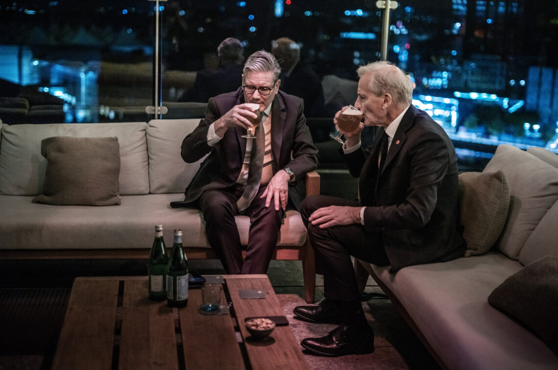 Etter en middag hos det danske kongeparet på Amalienborg slott tok statsminister Jonas Gahr Støre (Ap) seg en øl med Storbritannias statsminister Keir Starmer.